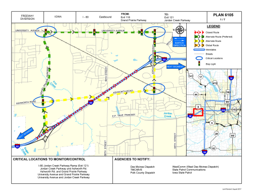 While the roadway is closed, you will follow a marked detour route using Jordan Creek Parkway, University Avenue, and Grand Prairie Parkway ( see map)